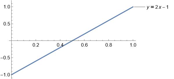 This is a simple line, however we would like to change the range from [0,1] to [-1,1]. We can derive the formula for it by solving the following system of linear equations: